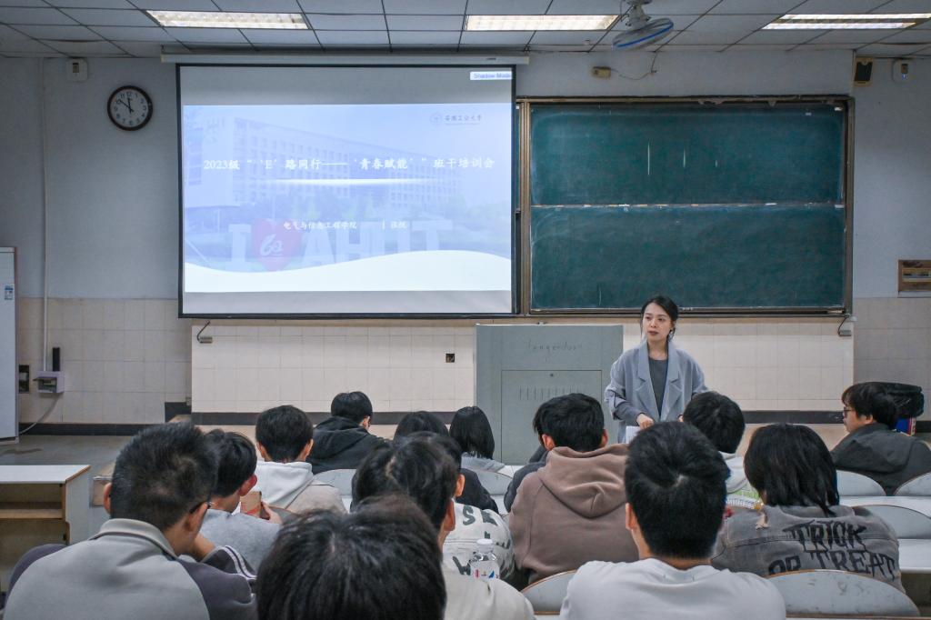 为加强班团骨干队伍建设,提升高年级班级管理与服务效能,11月5日,我院在秀山校区阶教203组织召开2023级“‘E’路同行——‘青春赋能’”班团骨干培训会第四期。本次培训聚焦“心理护航、学业协同、职业领航”三大主题,围绕大三学年关键节点开展专项赋能。2023级全体辅导员及各班班委参会,培训由张悦主持。