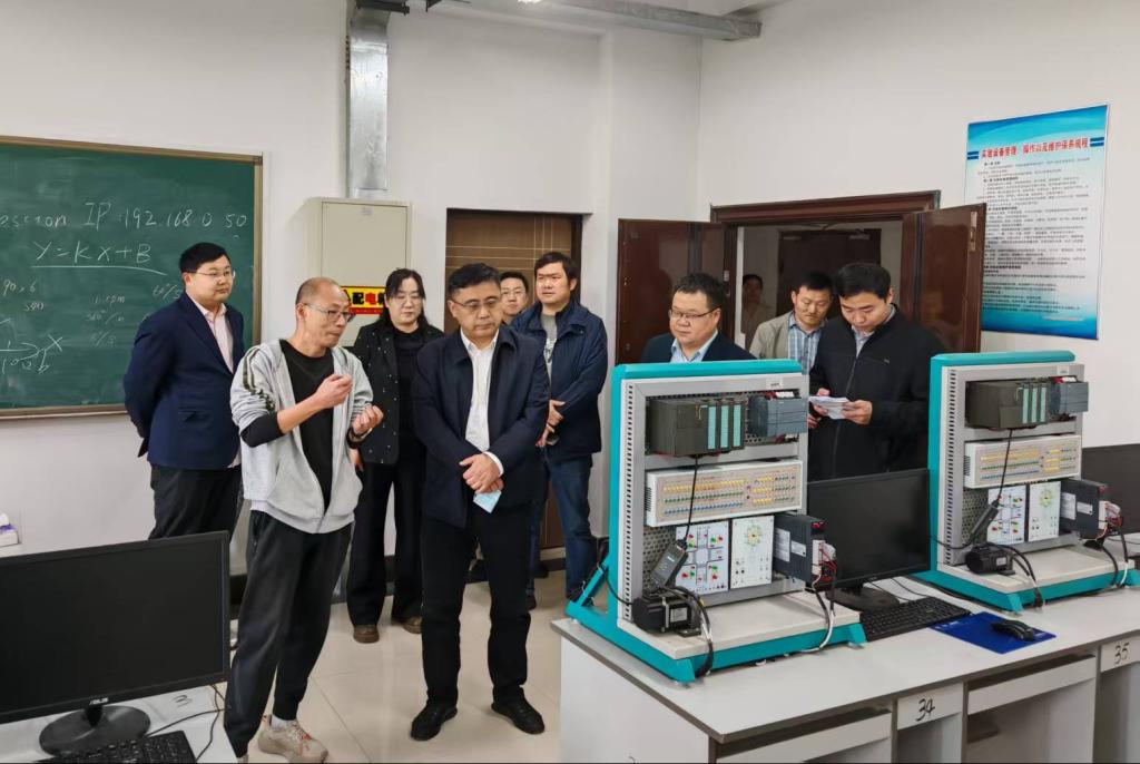 4月10日上午,副校长郑啸深入学院实验室,实地考察自动化和电子信息工程两个专业的工程认证准备工作,教务处处长孔辉、副处长陈德鹏陪同检查指导,学院领导班子、专业系室主任和实验室老师参加检查和汇报工作。