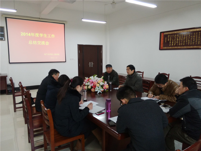 为了总结2014年学生工作,推动学院学生工作不断上台阶上水平,1月9日上午,电气与信息工程学院在电气楼304会议室召开了2014年度学生工作总结交流会。学院党委书记黄国才、副院长郭宏,全体辅导员参加了会议,会议由郭宏主持。
