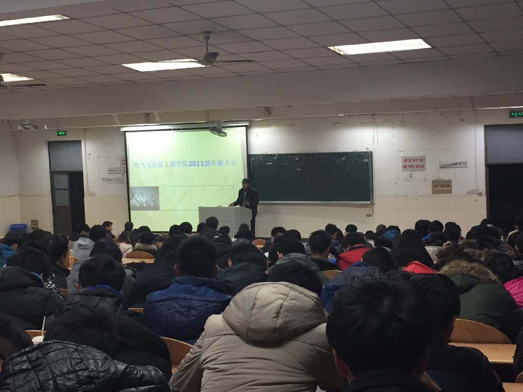 岁首年终之际,电气与信息工程学院于12月30日晚在东阶101室召开2011级年级会。院党委副书记、学生工作副院长郭宏、大四辅导员孔洋波、陶源以及2011级全体毕业班学生出席了本次大会。会议由孔洋波主持。