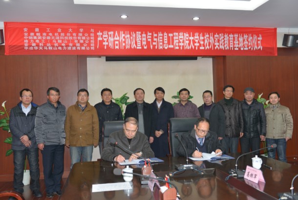 12月17日下午,安徽工业大学产学研合作暨电气与信息工程学院大学生校外实践教育基地签约仪式在我校佳山校区会议中心举行,马鞍山市经济和信息化委员会副主任王黄来,安徽皖南电机股份有限公司等五家知名企业的领导,我校副校长葛芦生、教务处等相关职能部门负责人,电气学院党政领导、部分教师参加签约仪式。仪式由电气学院聂建华副院长主持。