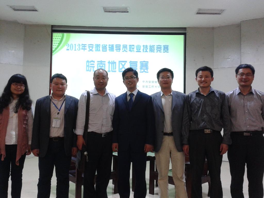 本次复赛分为基础知识测试、微博写作、案例分析、自我介绍与工作特色展示、谈心谈话、主题班会(策划书部分、主题班会(组织实施两部分)共六块内容、七个环节。注重考察辅导员的语言表达能力、活动组织策划及实施能力、思想教育和心理辅导能力、日常事务处理能力等多方面的知识和技能,全方位地展现辅导员的个人素养、知识储备和专业技能。来自皖南21个学校的30名选手参加比赛,最终选出九位辅导员参加将于5月底在安徽师范大学举行的决赛。