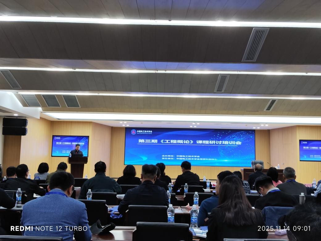 11月14日至11月16日,由中国电工技术学会南京科创中心举办的第三期《工程概论》课程研讨培训会在江苏南京举办,学院自动化系李峰副教授参加研讨培训。