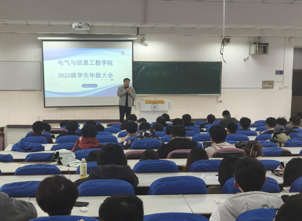 为扎实推进2026届本科毕业设计工作,确保全体毕业生平稳有序开展毕业设计,2026年3月25日,我院在东阶教102、103召开2026届本科生毕业设计动员大会。院党委副书记、副院长孔洋波,副院长张前进,辅导员甘如美江、杨恒基、孔瑜琦、各系室主任,及2026届全体本科毕业生参加会议。