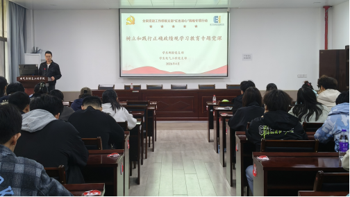 为深入学习贯彻习近平总书记关于树立和践行正确政绩观的重要论述,引导学生党员树牢正确政绩观、强化使命担当,4月13日,我院学生测控党支部与学生电气工程党支部联合开展树立和践行正确政绩观学习教育专题党课。党课由学生测控党支部书记杨恒基主讲,两个支部全体党员及发展对象参与学习。